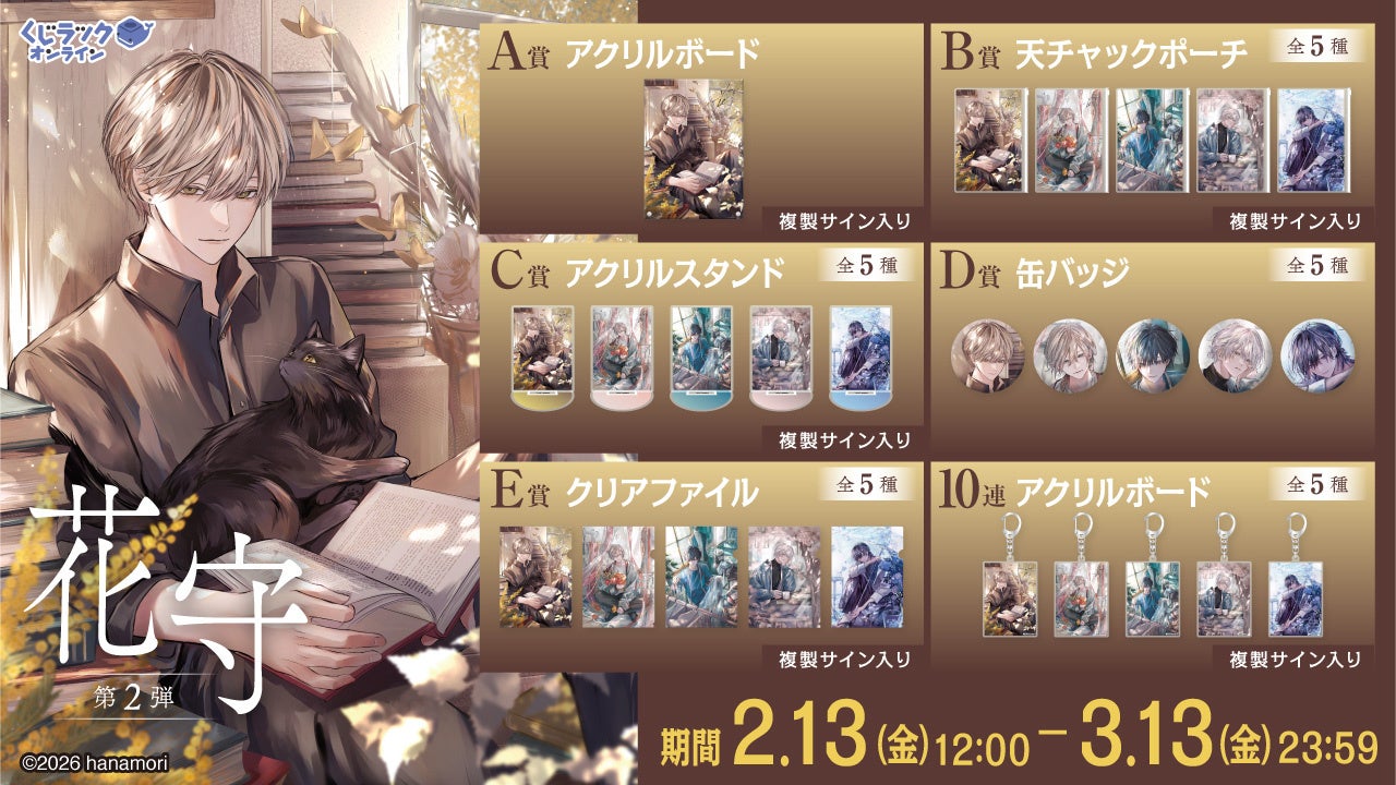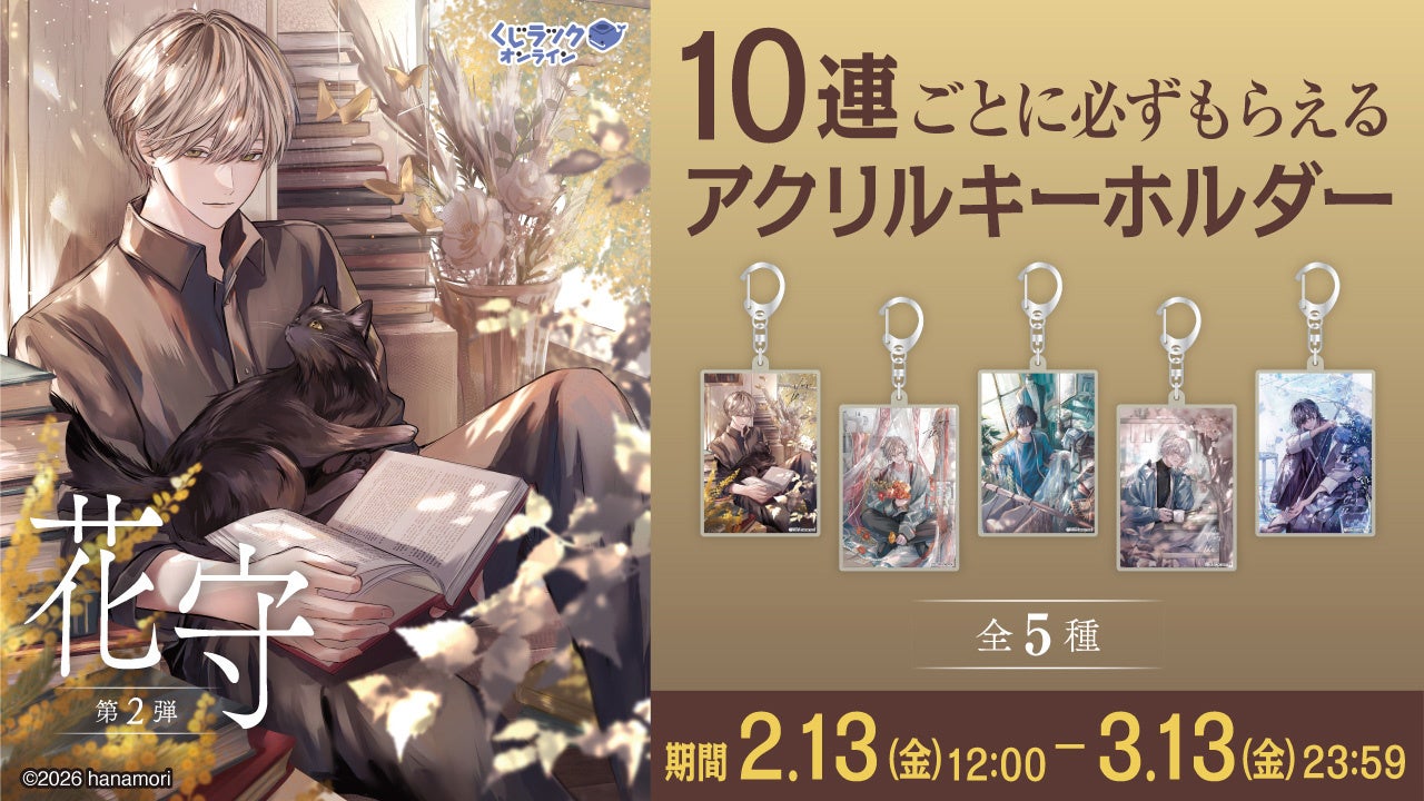 2026年2月13日(金)よりイラストレーター『花守』のオンラインくじ第2弾を、「くじラックオンライン」で販売いたします。さらに、くじ1枚ご購入ごとにWチャンス賞の抽選が行われ、当選した方は特別な賞品が獲得できます。