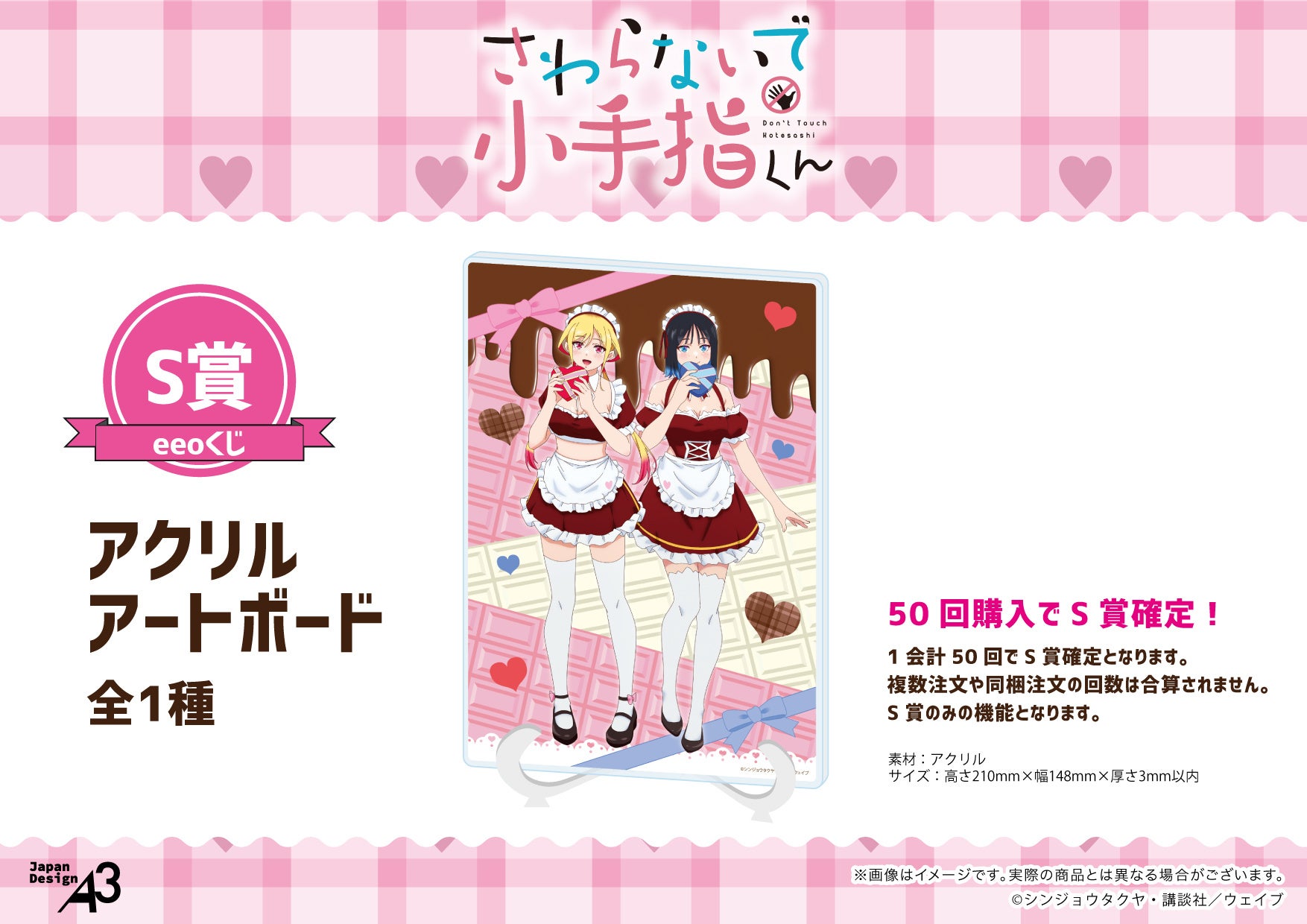 S賞は、A5サイズ(21cm×14.8cm)のアクリルアートボード。“メイドバレンタイン”をテーマにした、セクシー&キュートなアロマとあおばに胸キュン間違いなしです♪