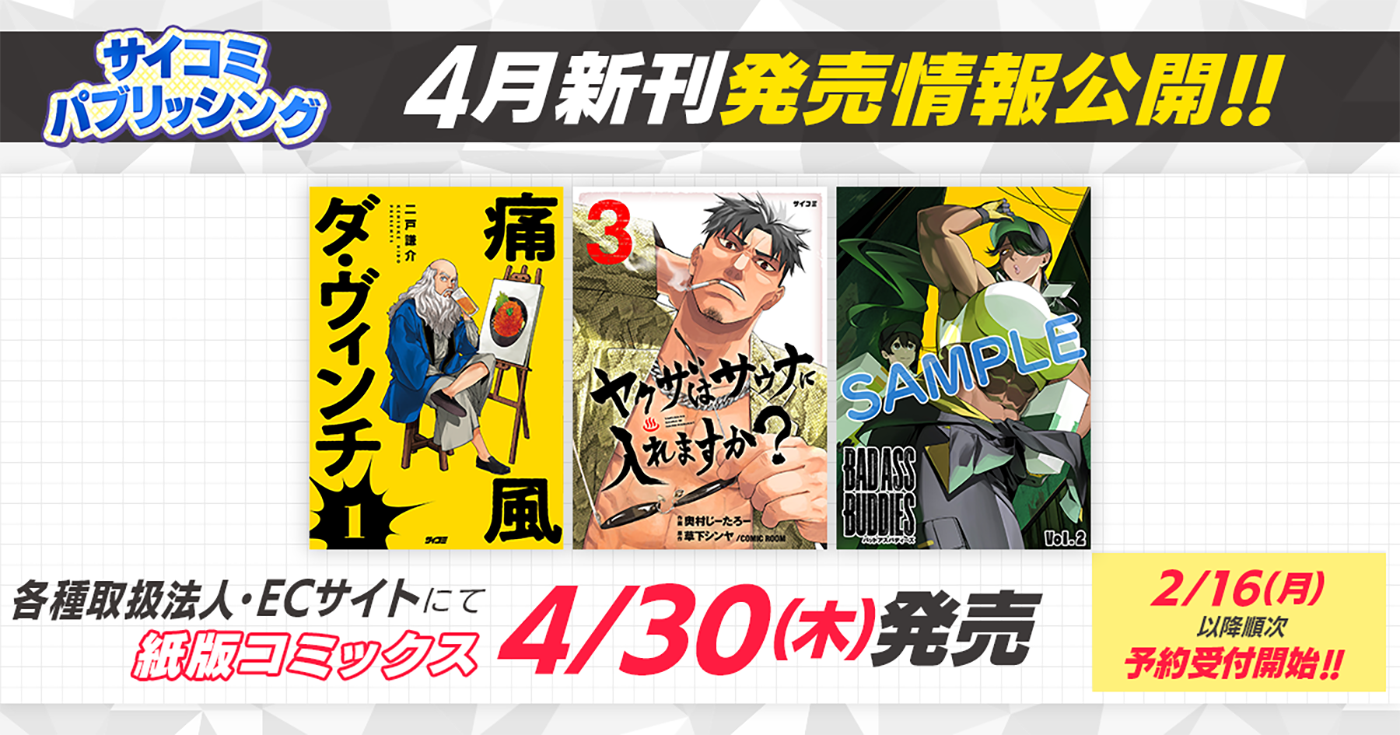 株式会社Cygames(本社:東京都渋谷区、代表取締役社長:渡邊耕一)は、マンガ配信サービス「サイコミ」で連載中の作品を自社で出版する「サイコミ パブリッシング」として、10タイトルの紙書籍を4月30日(木)から発売します。各種取扱書店およびECサイトにて、2月16日(月)から順次予約受付を開始します。