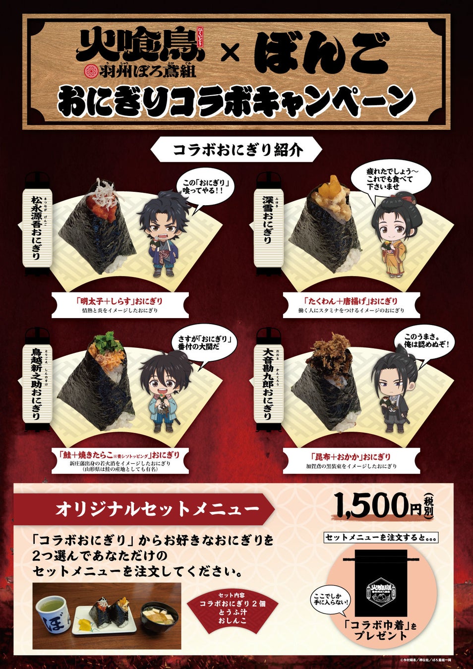 ▼「火喰鳥」×「おにぎり ぼんご」コラボキャンペーン詳細