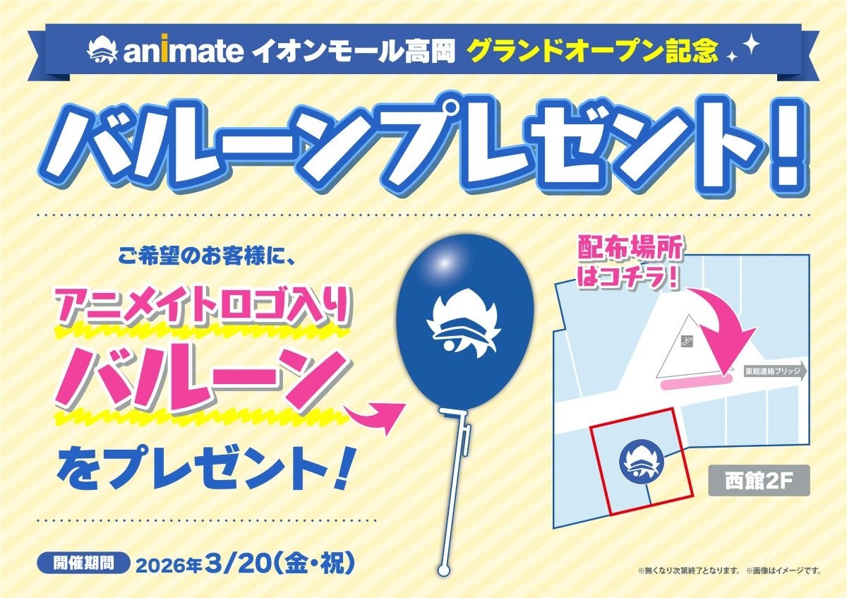 株式会社アニメイトは、2026年3月20日(金・祝)にグランドオープン予定の「アニメイトイオンモール高岡」で開催する、オープン記念キャンペーンの概要を発表いたしました。