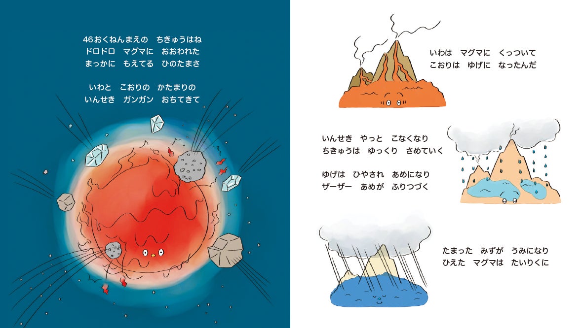 本書は、京都大学の人気No.1教授でありベストセラーの著書も多い鎌田浩毅氏による初めての絵本です。地球のこと、地震や津波、火山のことを、保育園や幼稚園生の子どもたちにもわかるようにやさしく伝えます。