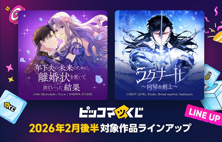 株式会社カカオピッコマ(本社:東京都港区、代表取締役社⻑:金在龍)は、ハズレなしのオンラインくじサービス『ピッコマくじ』2月後半の新作ラインアップを公開いたしました。
