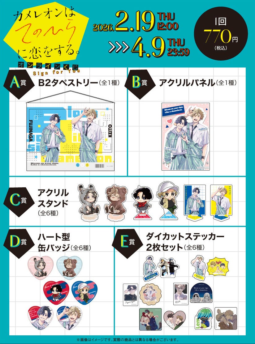 「カメレオンはてのひらに恋をする。」オンラインくじ(Sign for You)予約受付開始!販売期間は2026年2月19日(木)12:00~2026年4月9日(木) 23:59まで!