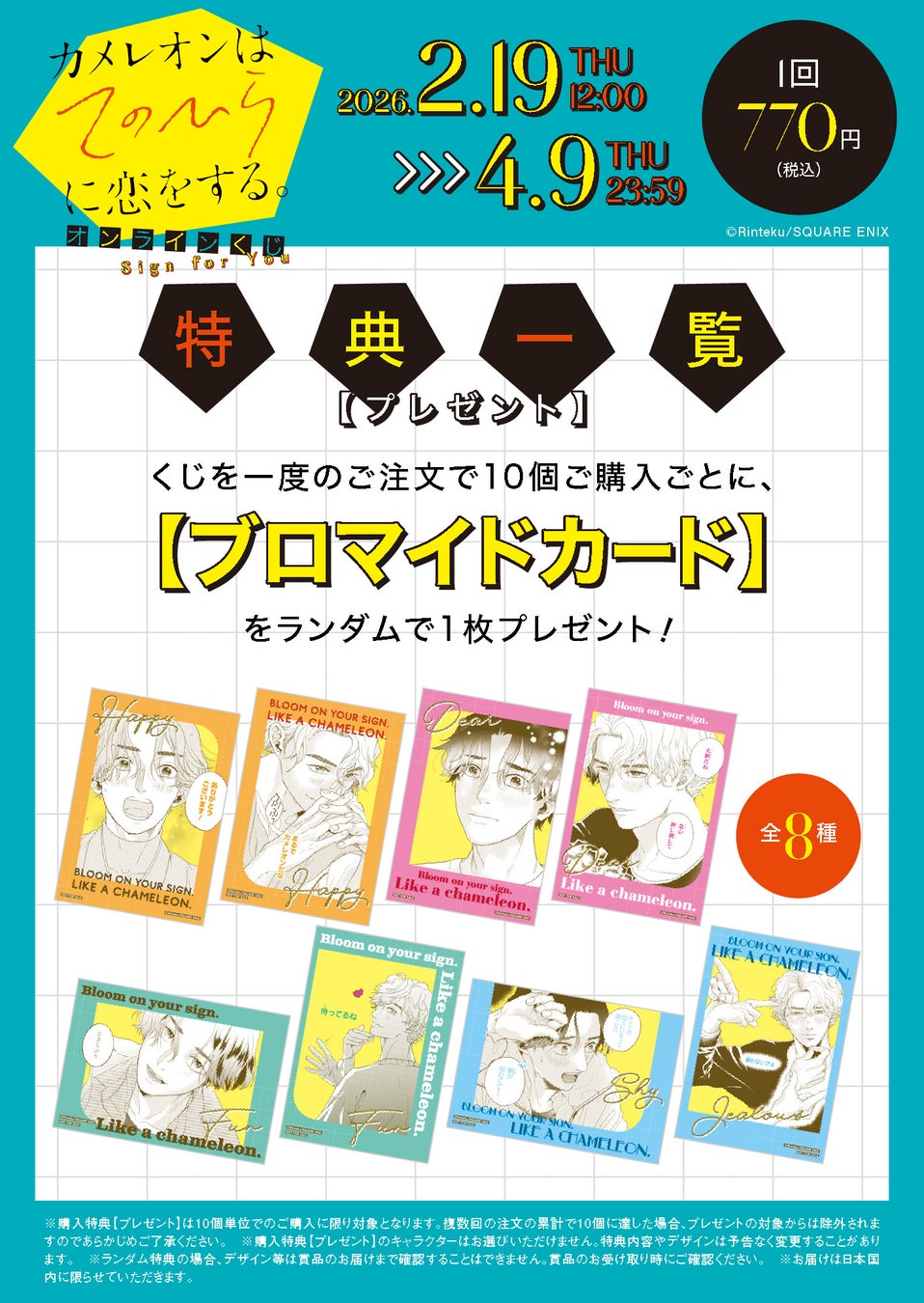 【「カメレオンはてのひらに恋をする。」オンラインくじ(Sign for You)概要】