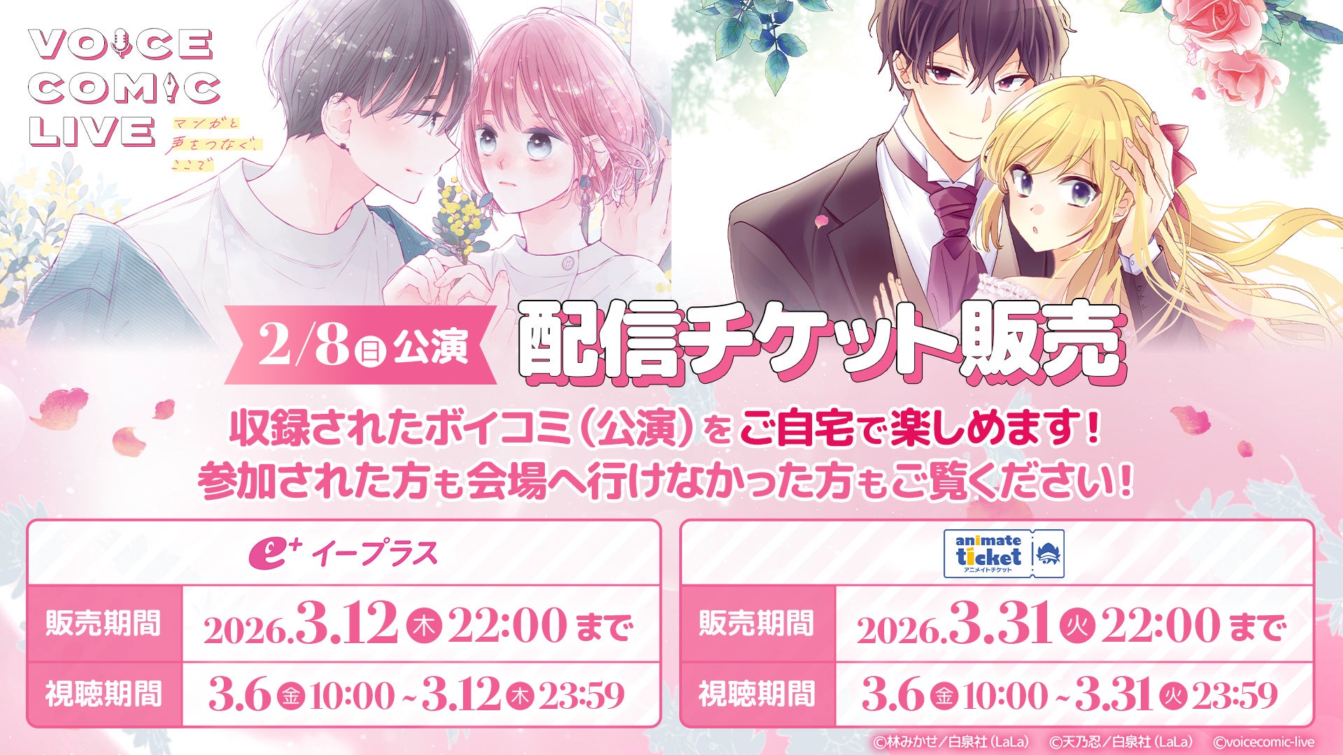 株式会社ヒューマックスエンタテインメント(東京都新宿区、代表取締役社長:秋元巳智雄)が、池袋HUMAXシネマズにて開催する『ボイスコミックライブ』の2026年2月8日(日)の出演者が決定しました。本公演は白泉社のLaLa50周年記念公演として「ときめき♡ラブコメ祭り」と題して開催します。『ボイスコミックライブ』は、スクリーンに映るマンガのキャラクターに、声優がライブで声を吹き込むステージイベントです。生の演技だからこそ味わえる緊張感と臨場感が、観客の皆様を物語の世界へエスコートいたします。
