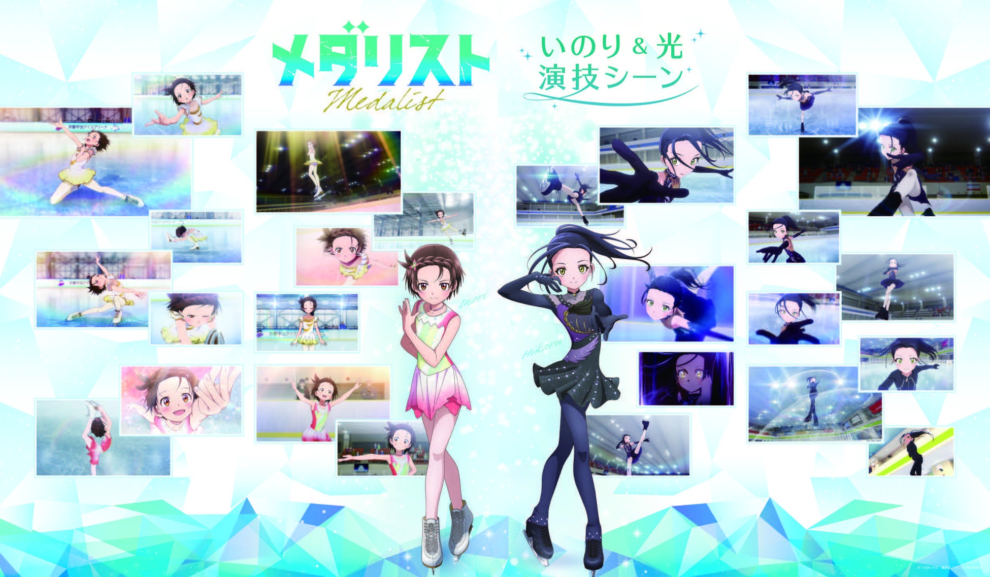 期間中、アニメの名シーンに登場した実際のスポットを紹介する舞台紹介パネルや演技シーンパネルを展示します。『メダリスト』で、いのりと光が初めて出会った場所をはじめ、ららぽーと名古屋みなとアクルス周辺に実在するスポットや演技シーンを通じて、作品の名場面を振り返ります。