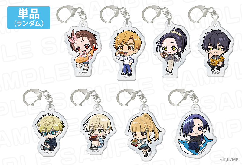 本イベントのために描き下ろしたイラストを使用したアクリルスタンドや、描き起こしのミニキャラを使用した缶バッジなど、ここでしか手に入らないファン必見のアイテムを10種ご用意しています。販売場所は、ららぽーと名古屋みなとアクルスの1F センターコートと三井ショッピングパーク公式通販サイト &mallで販売します。&mallではコラボ期間中、通期で受注販売を行っており&mall限定のアイテムもございます。