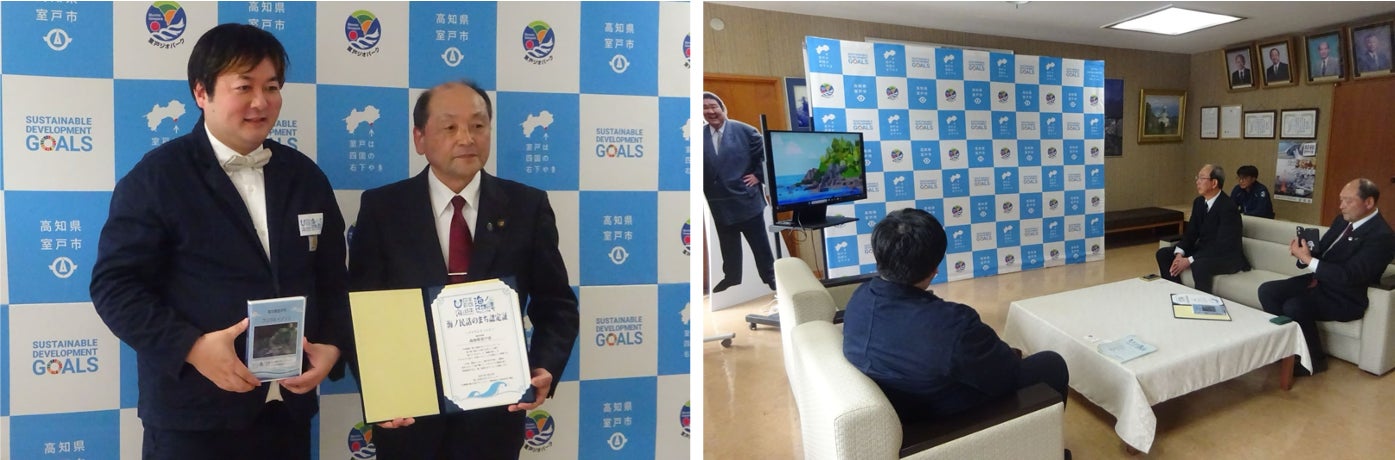 一般社団法人日本昔ばなし協会が取り組む「海ノ民話のまちプロジェクト」は、高知県室戸市を舞台にした海ノ民話アニメーション「クジラとイノシシ」が完成したため、2月16日(月)にアニメ監督が室戸市を訪問し、アニメのお披露目と「海ノ民話のまち」認定式を実施しました。このイベントは、次世代へ豊かで美しい海を引き継ぐために、海を介して人と人とがつながる“日本財団「海と日本プロジェクト」”の一環で実施しています。