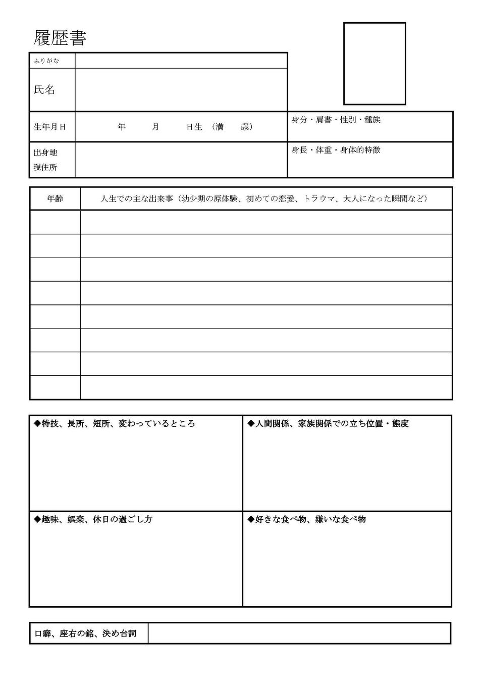 ただし、一般部門/ネーム部門、データ原稿/アナログ原稿/同人誌、どの部門・応募形式でも「メインキャラクター2人の履歴書」を必ずご提出ください。