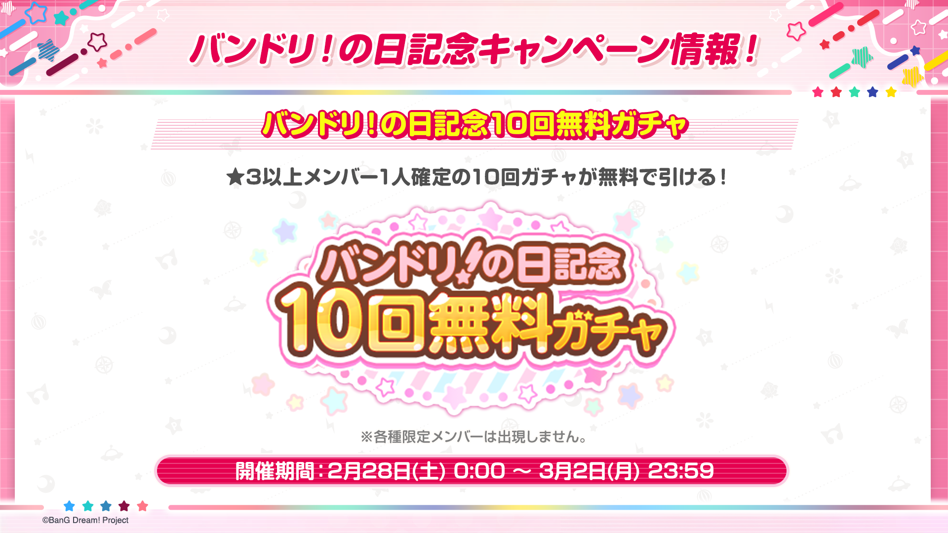 2. 「バンドリ!の日記念10回無料ガチャ」開催決定!