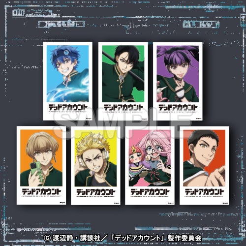 おまけ賞として、10連セットを購入すると7種類の「TVアニメ「デッドアカウント」くじ 証明写真風ポストカード」のうち1枚をランダムで獲得でき、20連セットの購入で同じ7種類の中からお好きな1枚を選んで獲得できます。