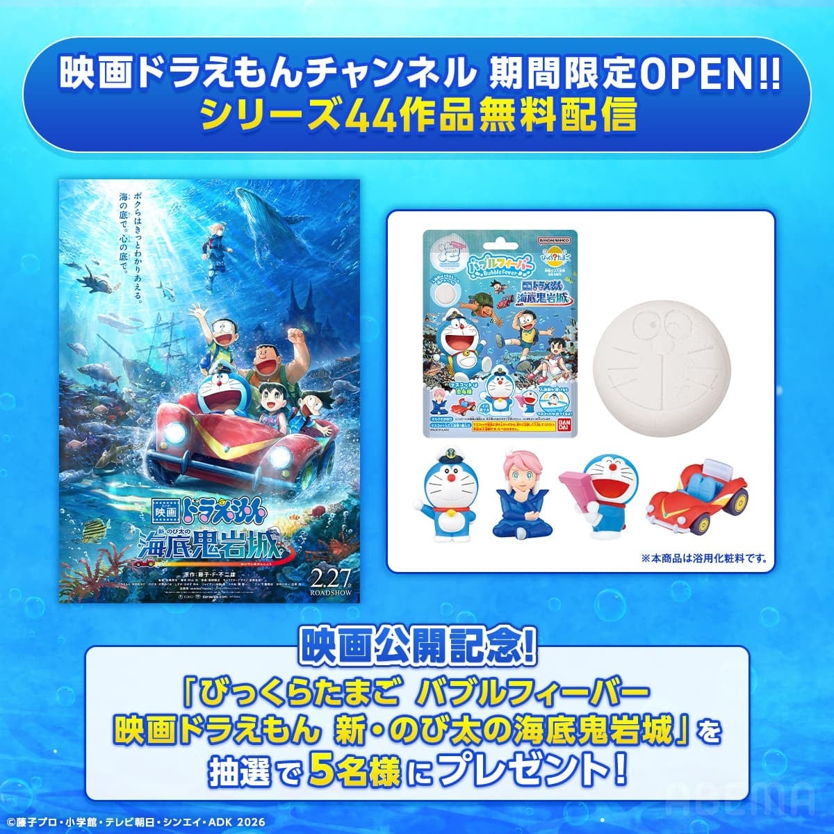 ■「ABEMA」『映画ドラえもん 新・のび太の海底鬼岩城』公開記念企画 概要