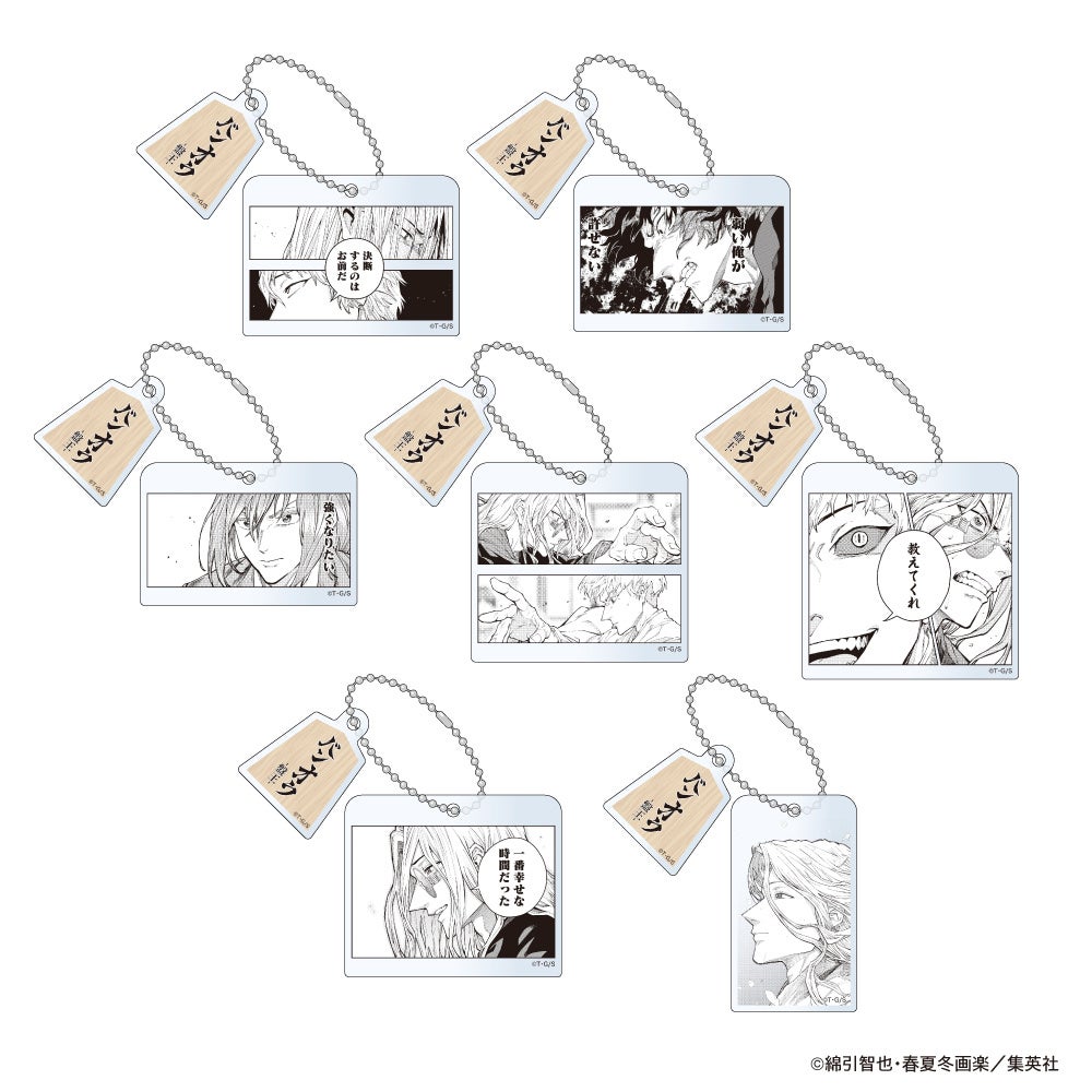 全8巻の表紙絵そのまま楽しめるウッドバッジ。木製で四角い形が他にはないアイテムです。裏側にはピンのほかクリップも付いており、自立させて飾ったり、メモ用紙を挟むなど、使い方は広がります。誰が出るかは、届いてからのお楽しみ。8種コンプリートできるセットもご用意しました。