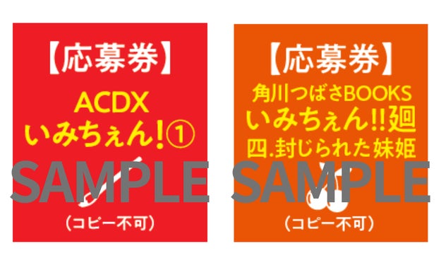 「いみちぇん! 1』(あすかコミックスDX)、『いみちぇん!!廻 四.封じられた妹姫』(角川つばさBOOKS)の2ヶ月連続刊行を記念して、あさばみゆきさん、市井あささんのサイン色紙(当選者の名前入り)が抽選で5名様に当たるキャンペーンを実施いたします。