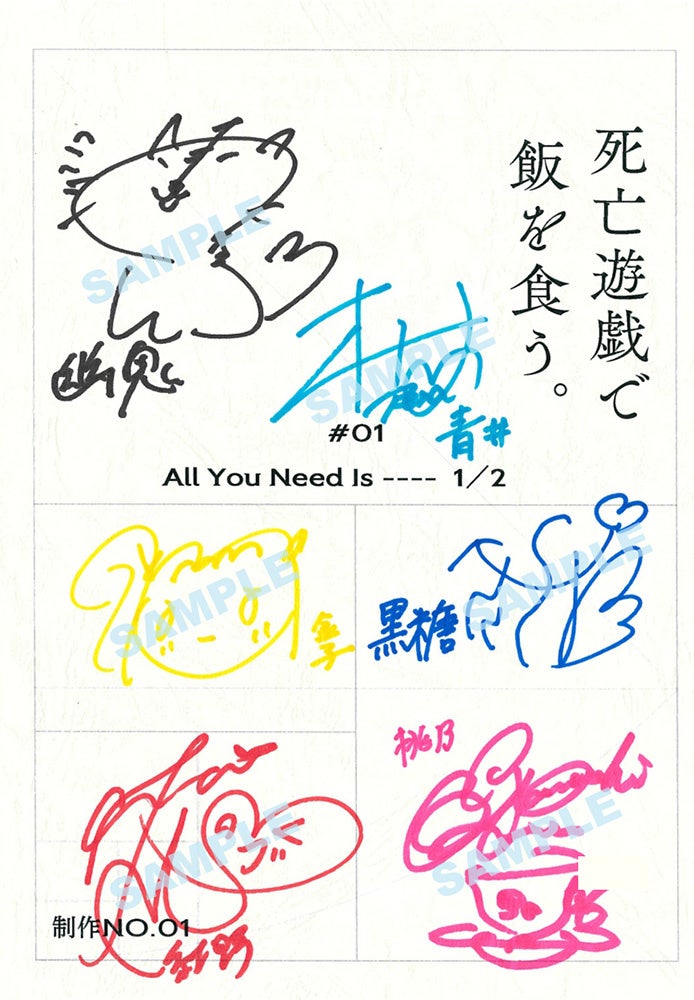 ※AKIHABARAゲーマーズ本店にて開催の「TVアニメ『死亡遊戯で飯を食う。』ミュージアム in AKIHABARAゲーマーズ本店」抽選会・D賞の特製キャラクターカード(全8種)と同一となります。