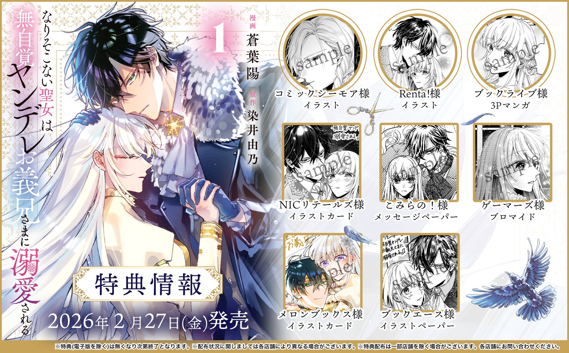 2月27日(金)発売・コミックライドivy『なりそこない聖女は無自覚ヤンデレお義兄さまに溺愛される 1』(漫画:蒼葉陽 /原作:染井由乃)の新刊情報&法人特典をご案内いたします!