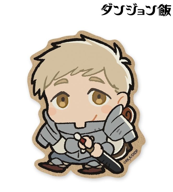 ライオス、マルシル、チルチャック、センシ、イヅツミ、ファリン、歩き茸のちびキャライラストをメインにデザインし、ウッド風コースターに仕上げました。