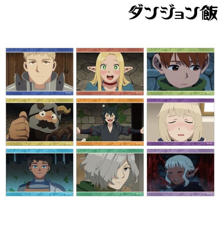 ライオス、マルシル、チルチャック、センシ、イヅツミ、ファリン、カブルー、ミスルン、シスルの印象的なシーンをブロマイドに仕上げました。