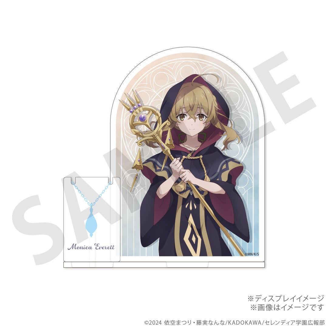 モニカの描き下ろしイラストを使用したアクリルジュエリースタンドをプレゼント。 ネックレスを着用した〈沈黙の魔女〉姿のモニカの半身デザインです。 |