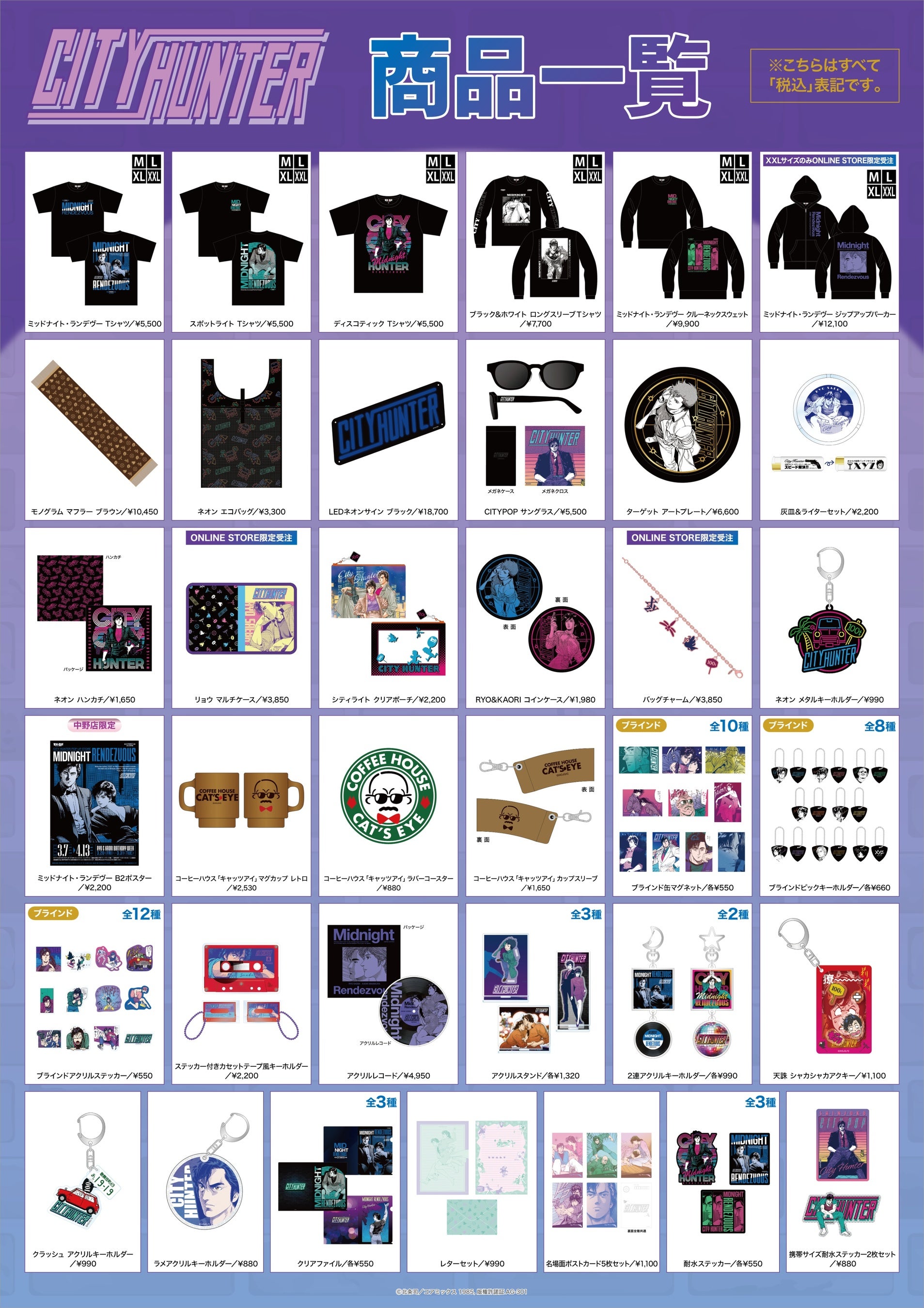 今回のタイトルは【CITY HUNTER POP UP STORE -Midnight Rendezvous-】(ミッドナイト・ランデヴー)。作品の舞台となった80年代の新宿を彩った街の喧騒や、ナイトクラブが生み出すネオンやミラーボールのまばゆい光と高揚感溢れる都会的な音楽。それらが交差する真夜中のアーバンライフをテーマに展開します。