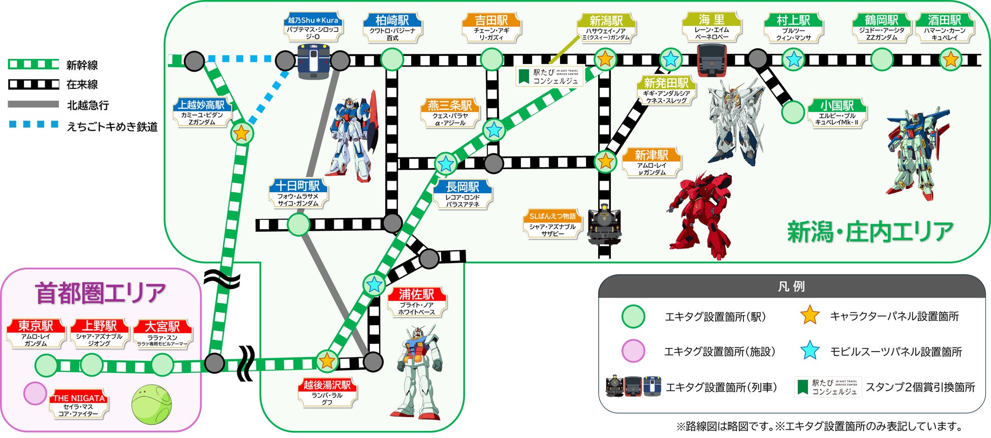 全22箇所(首都圏エリア:駅3箇所・施設1箇所/新潟・庄内エリア:駅15箇所・列車3車種)