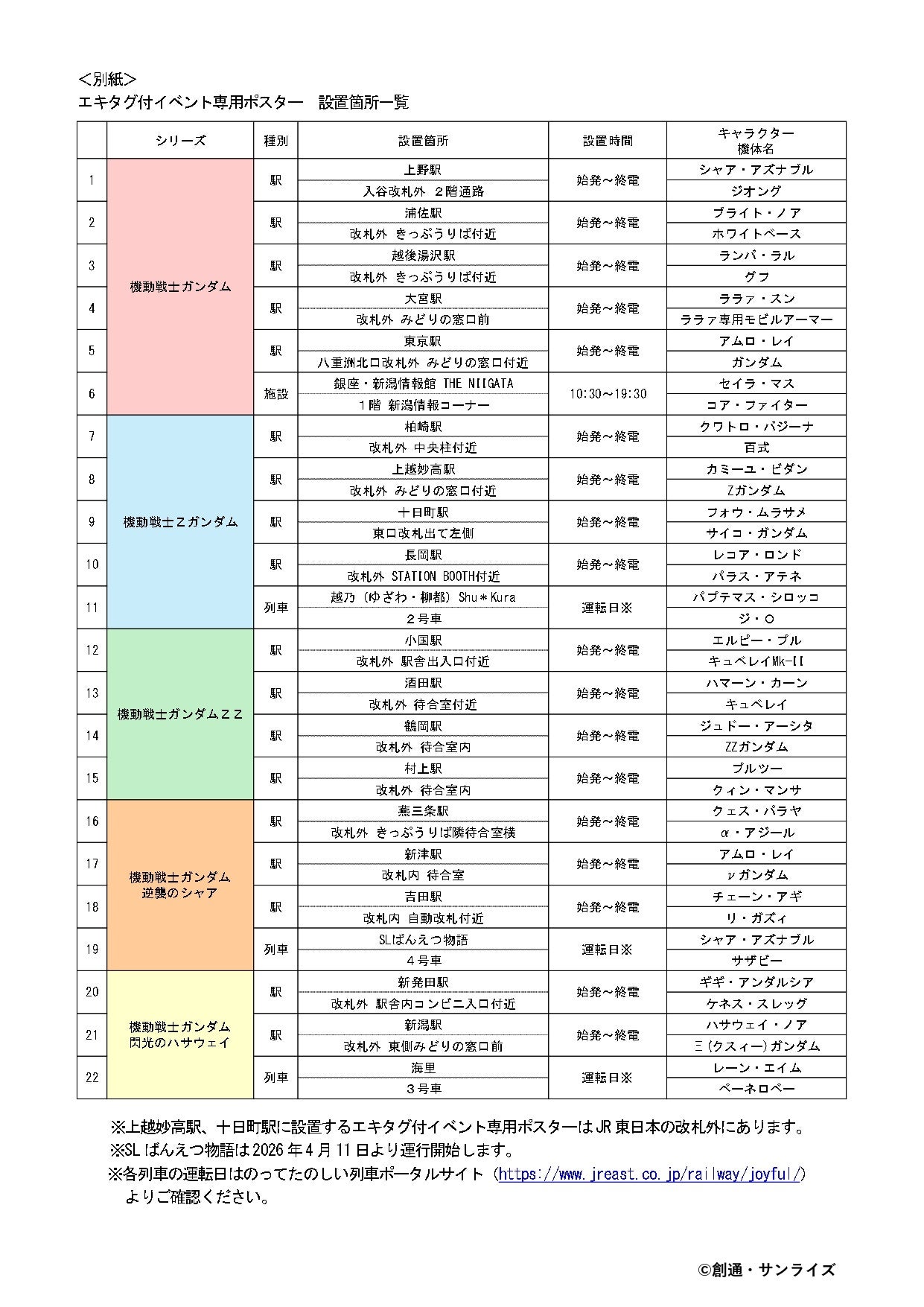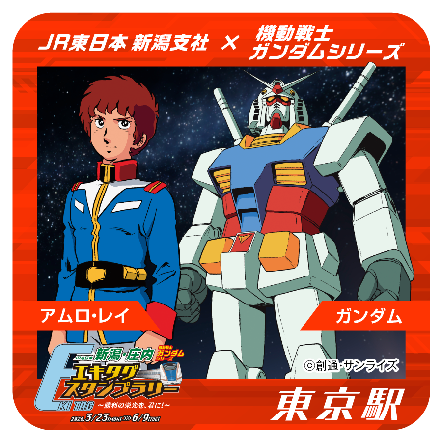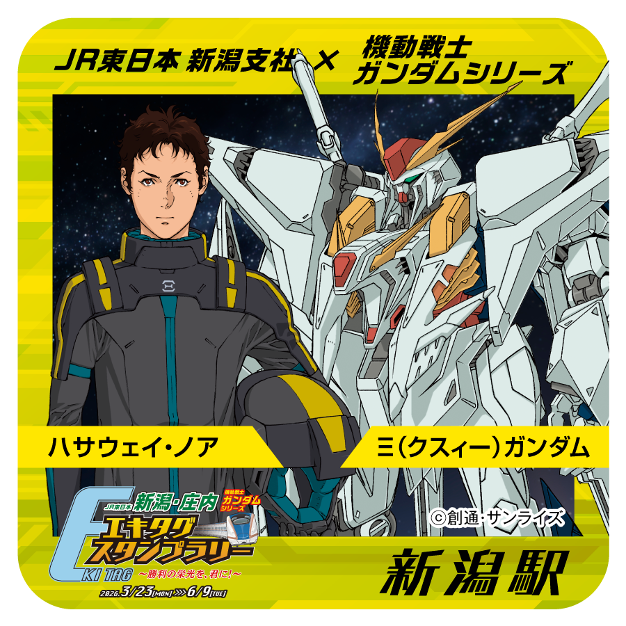 JR東日本では、絶賛公開中の映画『機動戦士ガンダム 閃光のハサウェイ キルケーの魔女』大ヒットを記念して、『機動戦士ガンダム』シリーズとタイアップし、「JR東日本 新潟・庄内 機動戦士ガンダムシリーズ エキタグスタンプラリー ~勝利の栄光を、君に!~」を開催します。