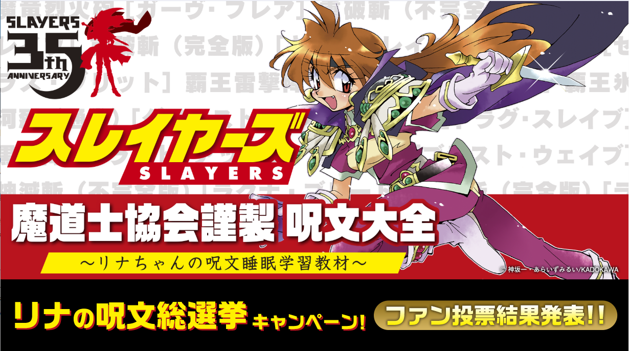 株式会社KADOKAWA(本社:東京都千代田区、代表取締役社長:夏野剛、以下 KADOKAWA)は、「スレイヤーズ」原作35周年記念として『スレイヤーズ』のASMRボイスコンテンツ『スレイヤーズASMR 魔道士協会謹製 呪文大全 ~リナちゃんの呪文睡眠学習教材~』を、ボイスドラマ配信アプリ「mimicle(ミミクル)」にて、本日(2/27)販売することをお知らせいたします。