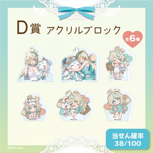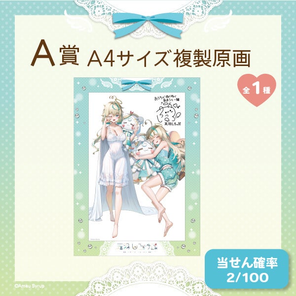 2パターンのルームウェアを着た『天羽しろっぷ』の新規描き下ろしイラストを使用したグッズが、オンラインくじで手に入ります!