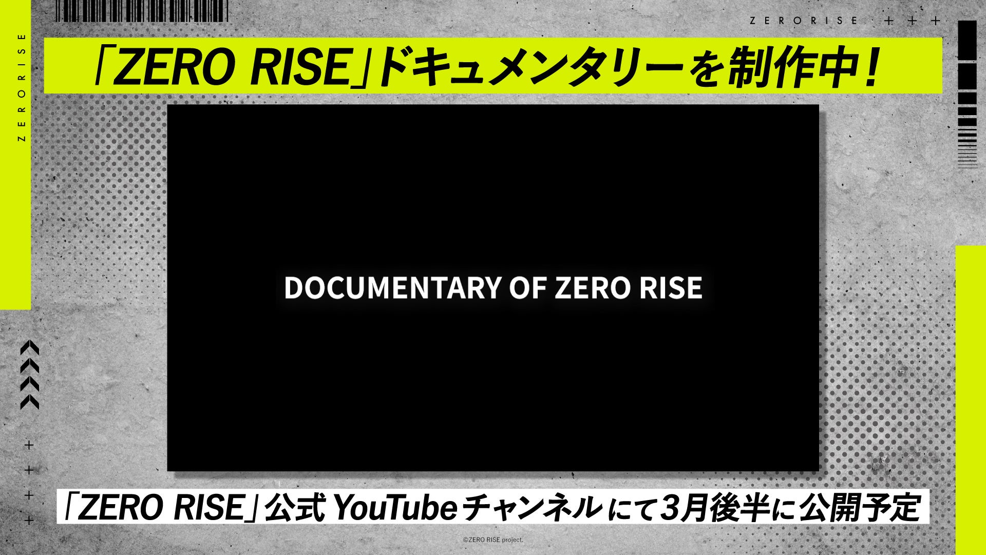 ドキュメンタリーは「ZERO RISE」公式YouTubeチャンネルにて3月末頃に公開予定です。