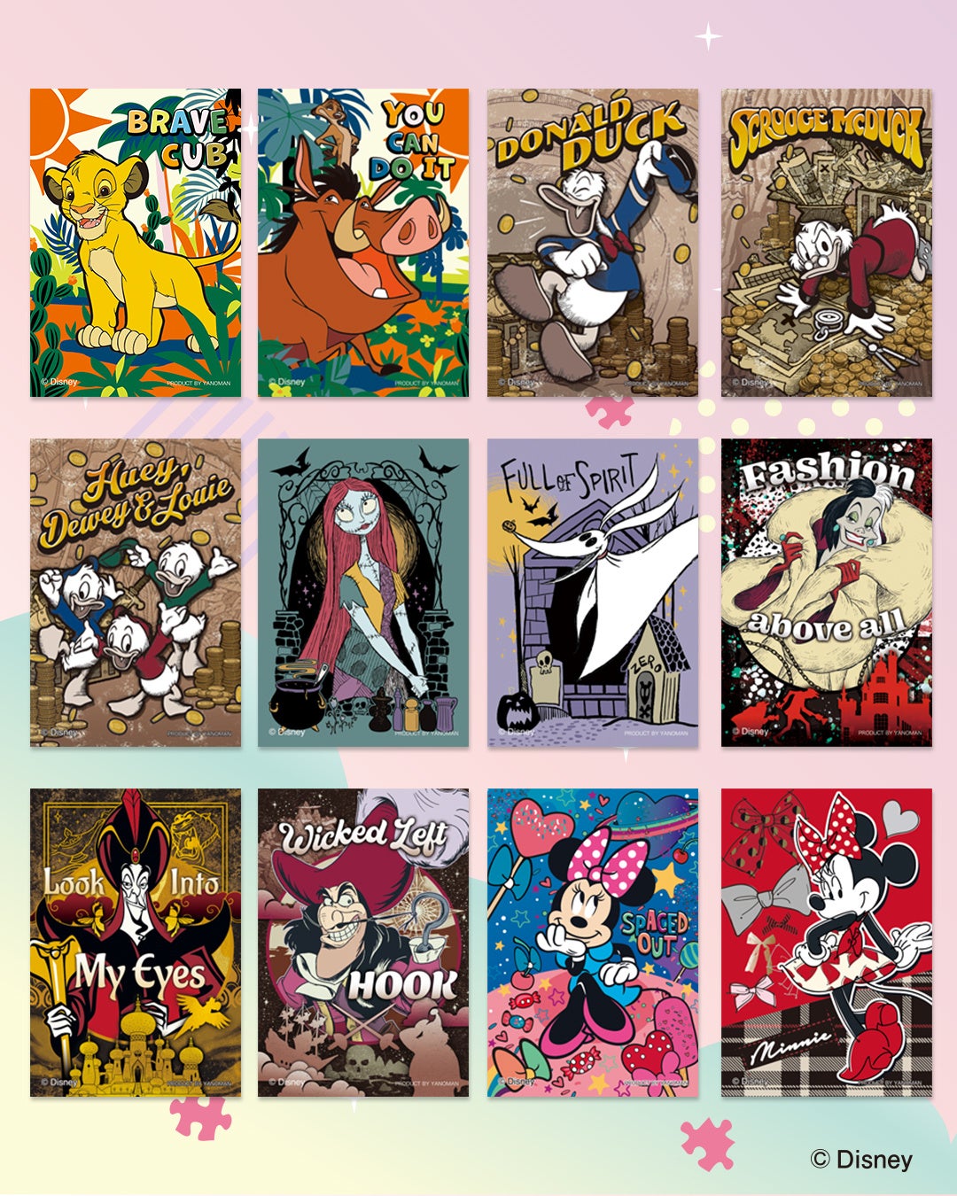 第4弾では、ディズニーの人気作品を中心とした魅力的な新柄12種が登場します。『ナイトメアー・ビフォア・クリスマス』から、鼻先のカボチャが愛らしいゼロやつぎはぎ人形のサリー、ストーリーが感じられるヴィンテージ調のスタイリッシュなドナルドダックなど、幅広いディズニー作品が勢ぞろい。推しを見つけてもらうため、様々なラインナップをご用意しました。完成後は愛らしい仲間たちと一緒におでかけを楽しめます。