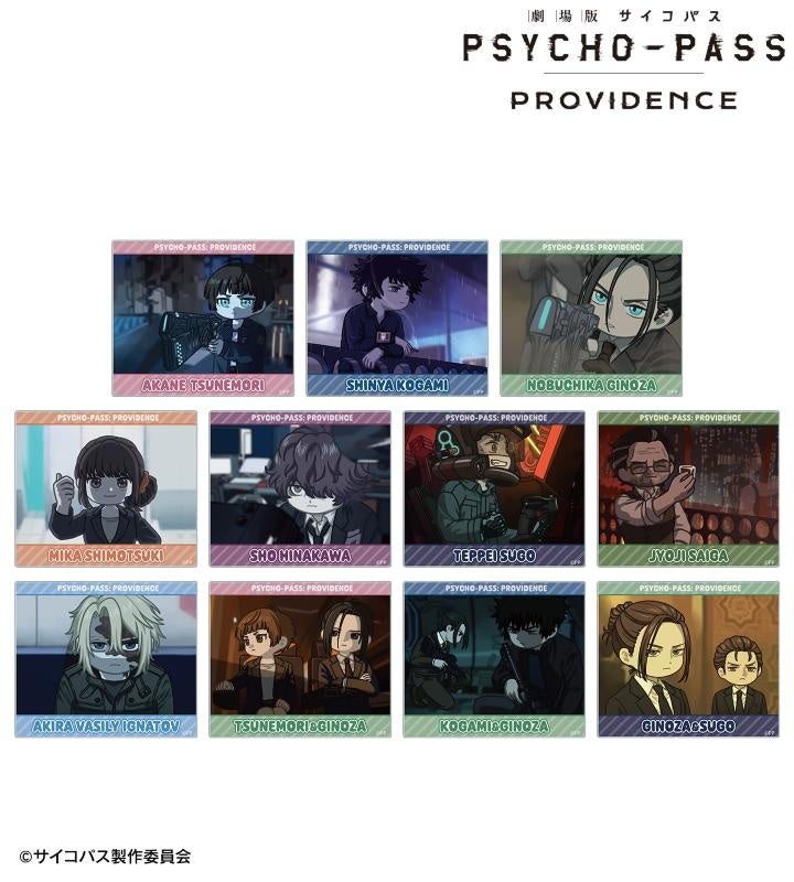 常守 朱、狡噛 慎也、宜野座 伸元、霜月 美佳、雛河 翔、須郷 徹平、雑賀 譲二、煇・ワシリー・イグナトフの印象的なシーンをそのままデフォルメで再現し、アクリルカードに仕上げました。