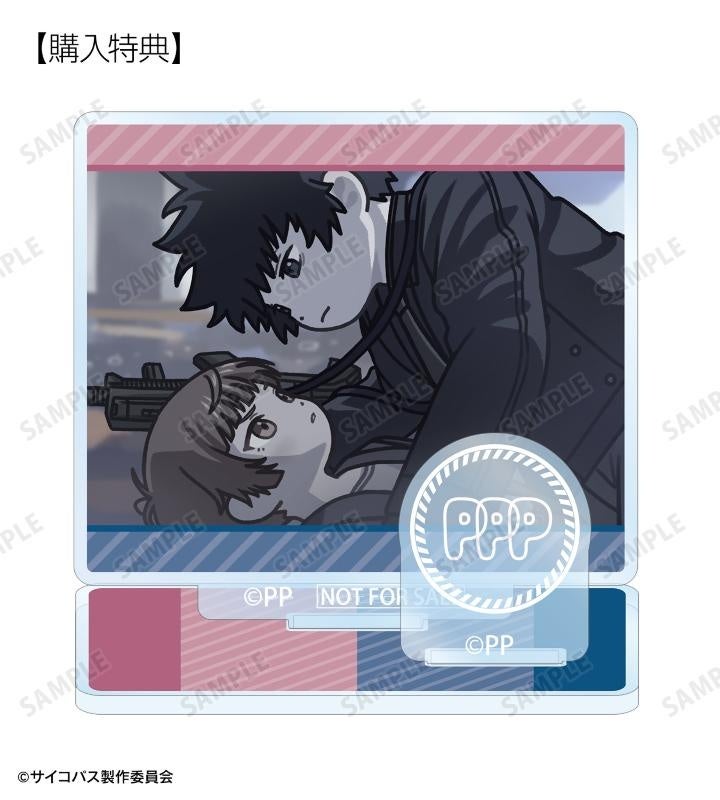 常守 朱、狡噛 慎也、宜野座 伸元、霜月 美佳、雛河 翔、須郷 徹平、雑賀 譲二、煇・ワシリー・イグナトフの印象的なシーンをそのままデフォルメで再現し、パーツ付きのアクリルスタンドに仕上げました。