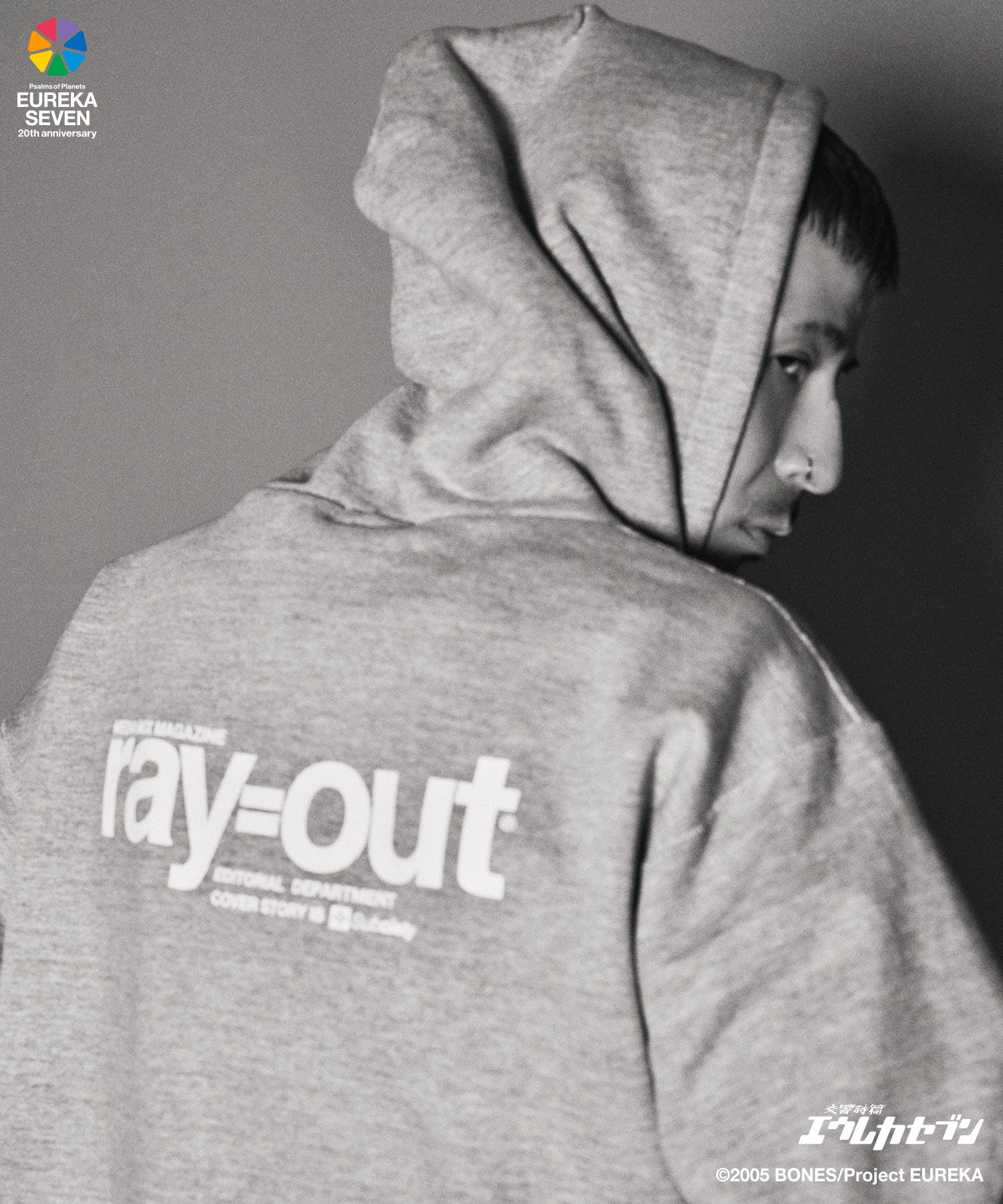 作中に登場する雑誌「ray=out」の編集部用のパーカをイメージ。