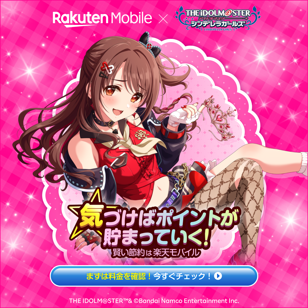 本企画では、「アイドルマスター シンデレラガールズ」に登場する総勢46名のアイドルが「楽天モバイル」の魅力を50音で表現した広告を、2026年3月13日(金)にウェブ上で配信開始します。広告では、「あ」から「ん」までのひらがな50音から始まるメッセージが入った、各アイドルによるPRを展開します。