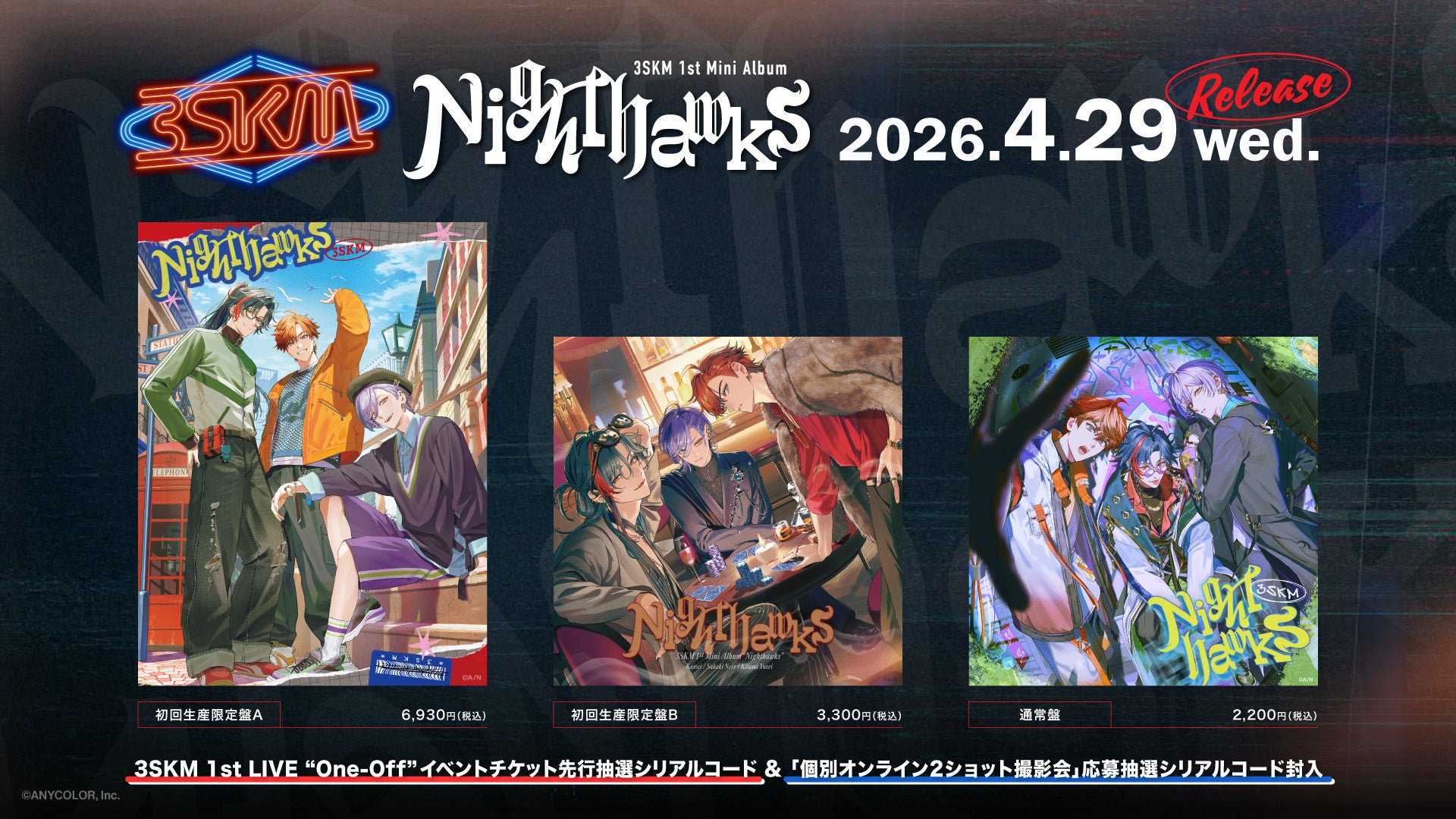 さらに2026年4月29日(水)発売のCD商品「Nighthawks」に本公演の先行抽選シリアルコードが封入されることも決定し、CD発売同日よりシリアル先行抽選の受付もスタート!この機会にぜひご応募ください。