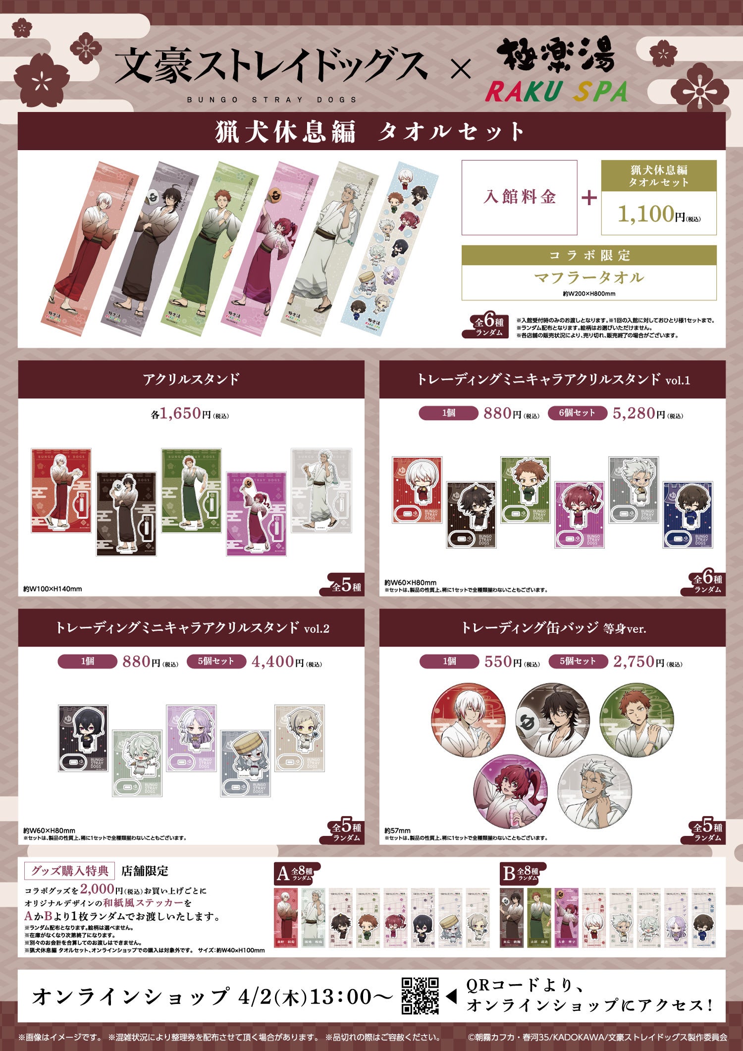 アニメ「文豪ストレイドッグス」×極楽湯・RAKU SPAコラボキャンペーン