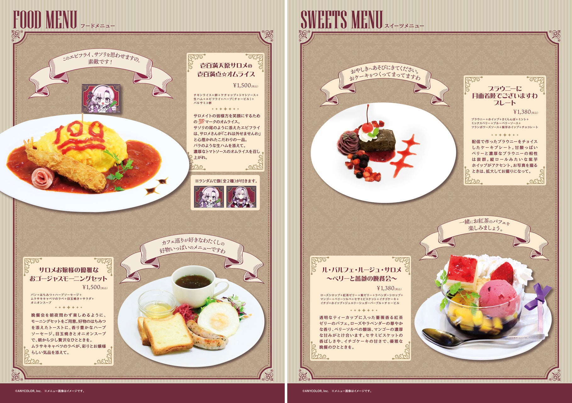 コラボカフェには、紳士淑女の皆様方にむけて、サロメさんご本人に監修いただいたコラボメニューがラインナップ。コラボメニューをご注文で【限定特典】をプレゼントいたします。
