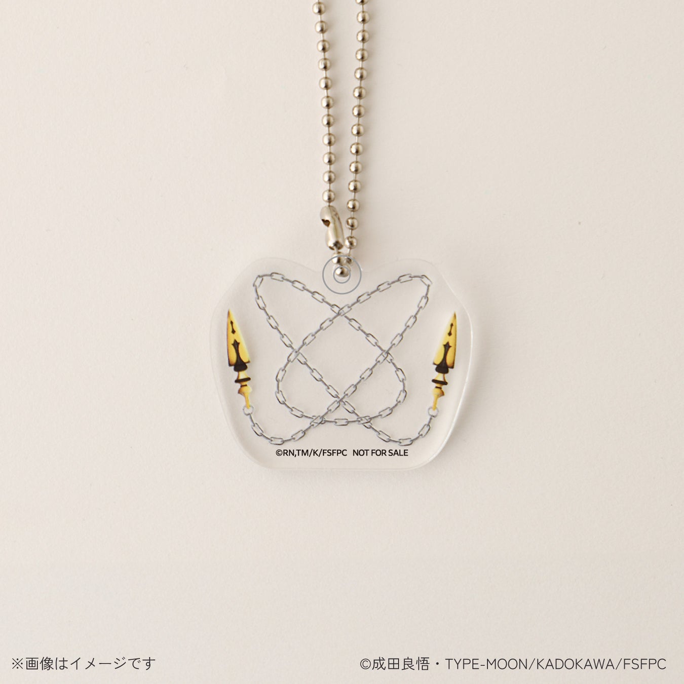 ランサーの宝具「天の鎖」をデザインしたチャームが付きます。ボトルの首にかけボトルチャームとして使用することや、鞄などにつけることでキーホルダーとしてもご使用いただけます。