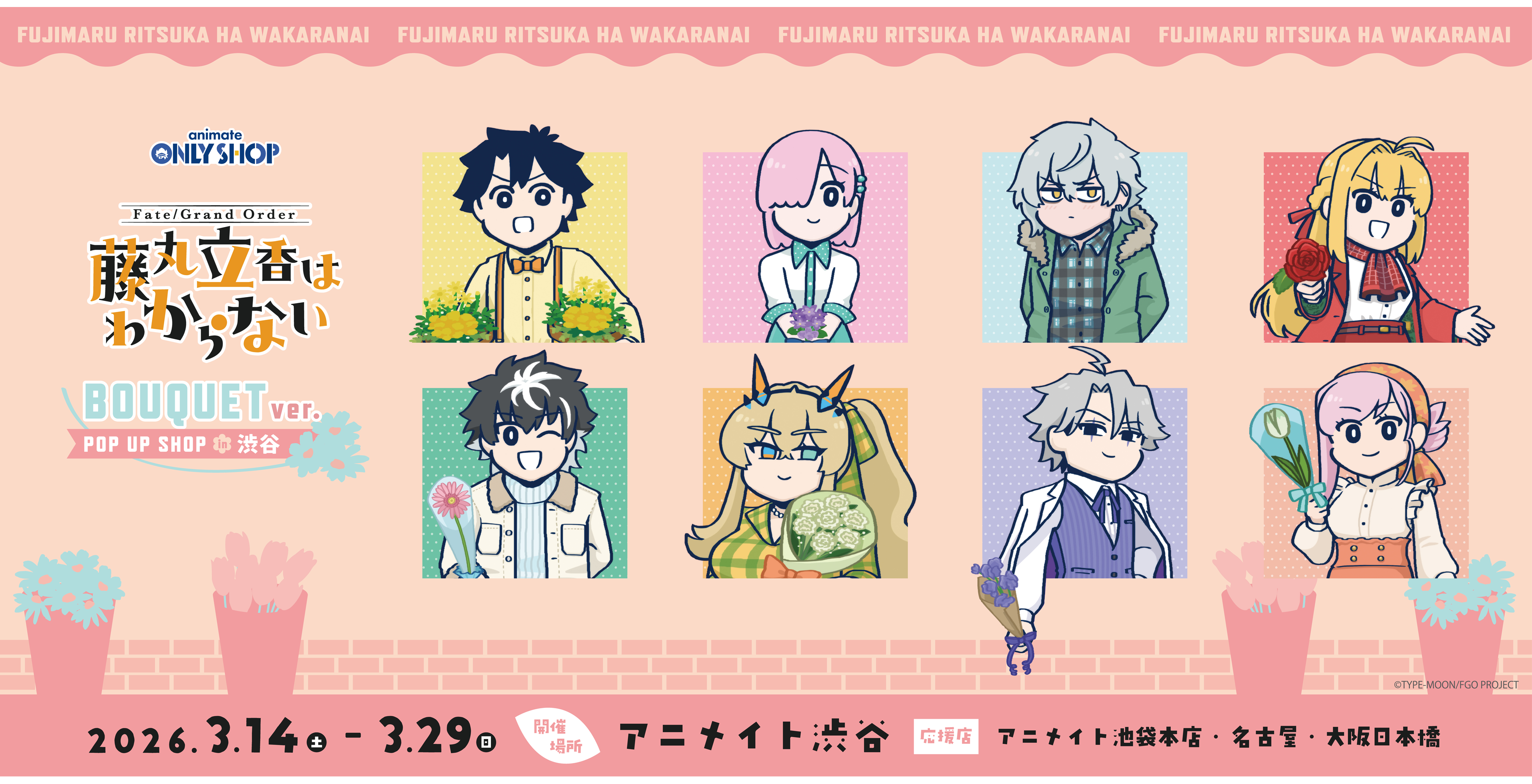 株式会社ディー・エル・イー(本社:東京都千代田区、代表取締役社長 CEO・CCO:小野 亮、以下「DLE」)がアニメーション制作を担当する、ショートアニメ『Fate/Grand Order 藤丸立香はわからない』(以下『藤丸立香はわからない』) のPOP UP SHOPを2026年3月14日(土)からアニメイト渋谷にてスタートいたしました。