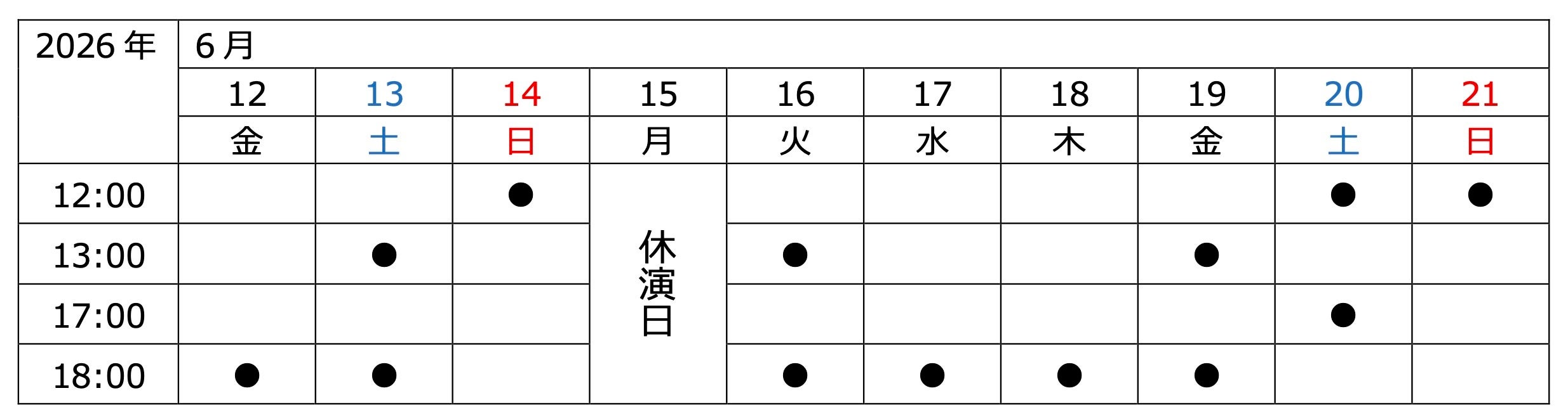公演期間:2026年6⽉12⽇(金)〜6⽉21⽇(日)