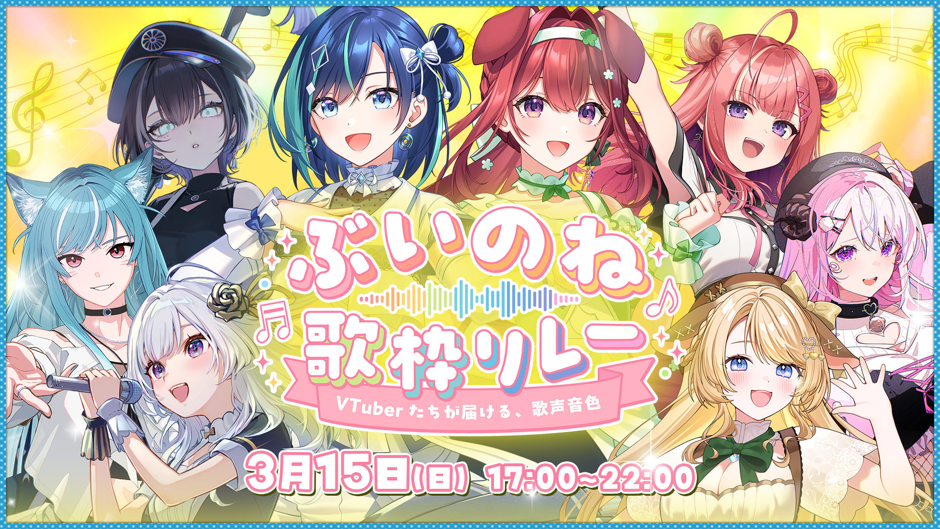 総勢8組の個性が共鳴する5時間。「VTuberたちが届ける、歌声音色(ねいろ)をコンセプトにバトンを繋ぎます。