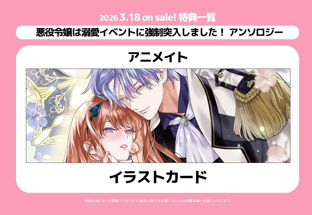 株式会社リブレ(本社:東京都新宿区、代表取締役社長:是枝由美子)は、本日2026年3月18日(水)に悪役令嬢は溺愛イベントに強制突入しました! アンソロジーを発売いたします。また、pixivコミック掲載のWEB雑誌『くろふねピクシブ』にて同作の連載を開始いたしました。https://comic.pixiv.net/works/12937