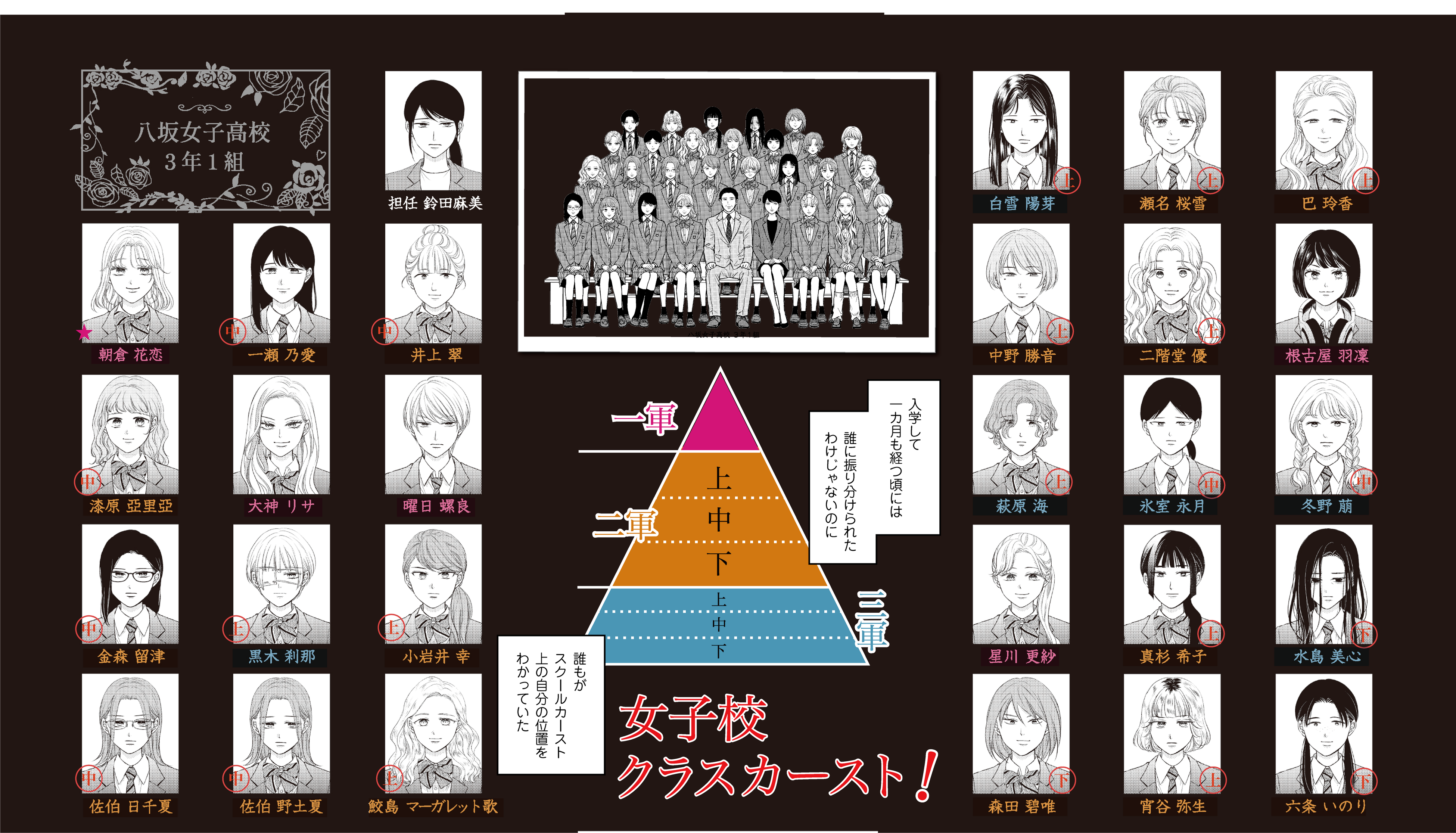 華やかな容姿や才能に恵まれた、目立つ存在である一軍女子。これといった特徴のないごく普通の二軍女子。陰キャや変わり者の掃きだめである最下層の三軍女子。