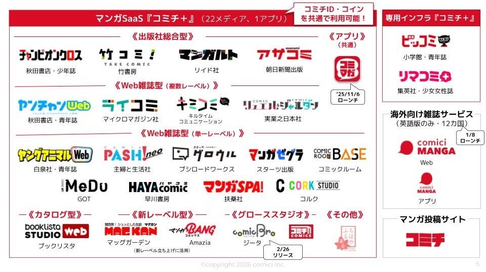 今後もコミチは、マンガSaaS「コミチ+」を通じて、出版社やウェブトゥーンスタジオなどのコンテンツホルダーの皆さまに対し、システム提供、運用支援、デジタルマーケティング支援など、幅広いサポートを提供してまいります。