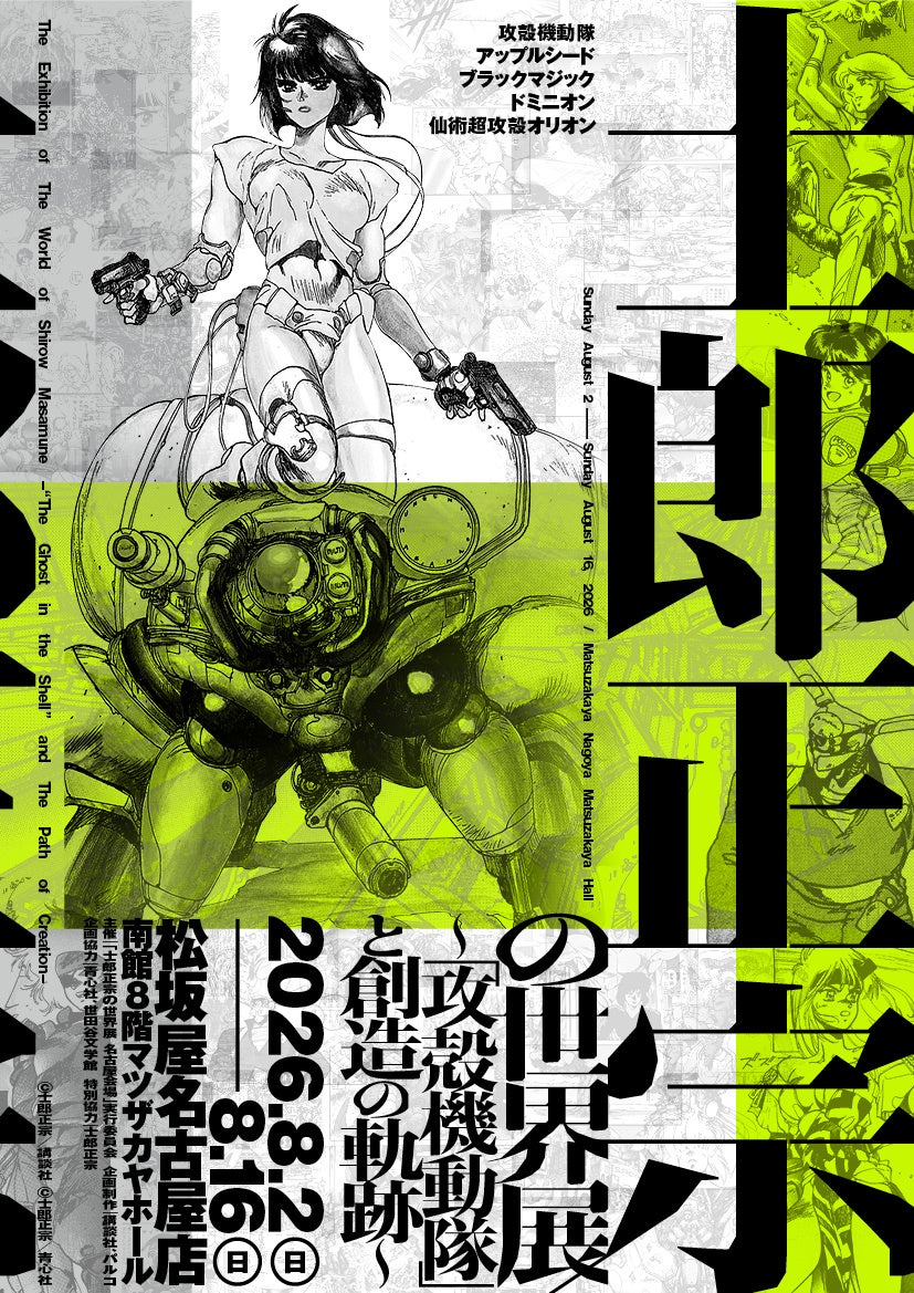 株式会社パルコは、株式会社講談社、「士郎正宗の世界展 名古屋会場」実行委員会とともに、東京・大阪で累計6.5万人超を動員した話題の展覧会【士郎正宗の世界展~「攻殻機動隊」と創造の軌跡~】を、2026年8月2日(日)から8月16日(日)まで、松坂屋名古屋店 南館8F マツザカヤホールにて開催いたします。東京・世田谷文学館では5.5万人を越える動員を記録し、大阪・心斎橋PARCOでも大きな反響を呼んだ本展が、ついに東海エリアに初上陸いたします。