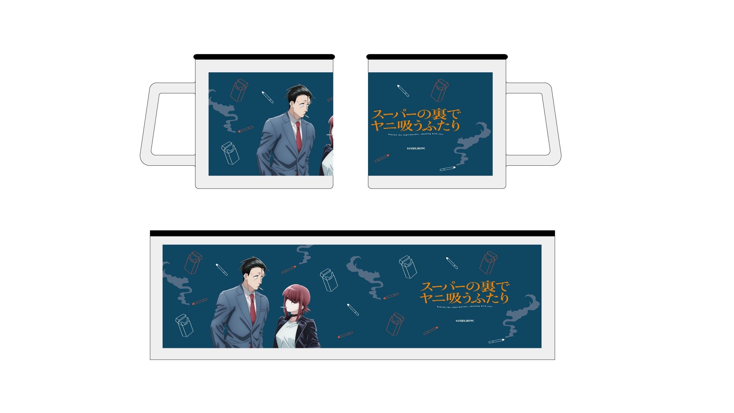 TVアニメ「スーパーの裏でヤニ吸うふたり」のキャラクターや世界観を楽しめるグッズとして、コレクション性の高いアクリルスタンドやトレーディングアイテムのほか、日常使いできるマグカップやトートバッグ、Tシャツなどを展開いたします。