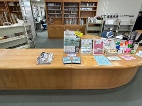 目に留まりやすいように受付カウンターにポスターとともに掲示しています。