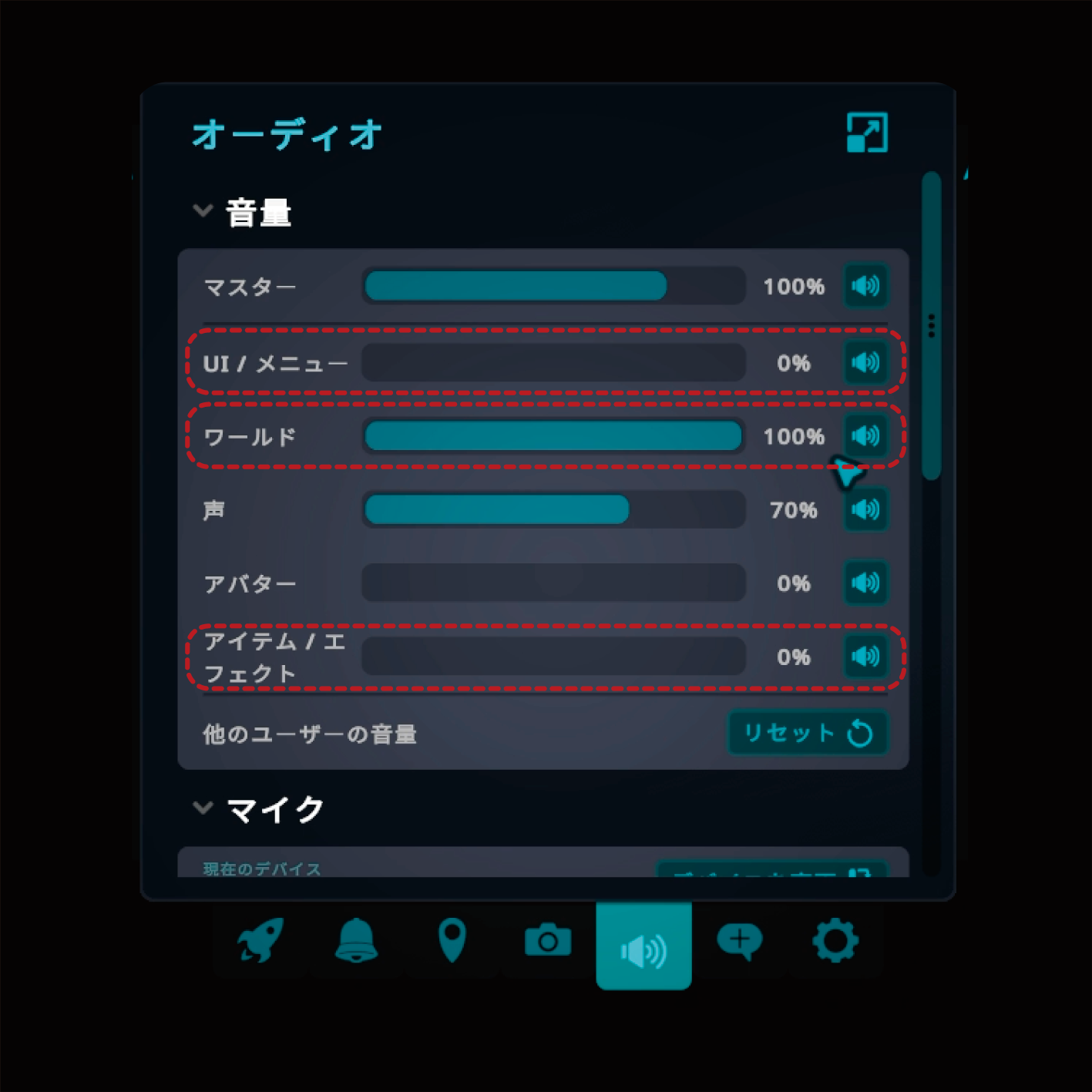 ・UI/メニュー音量は0を推奨