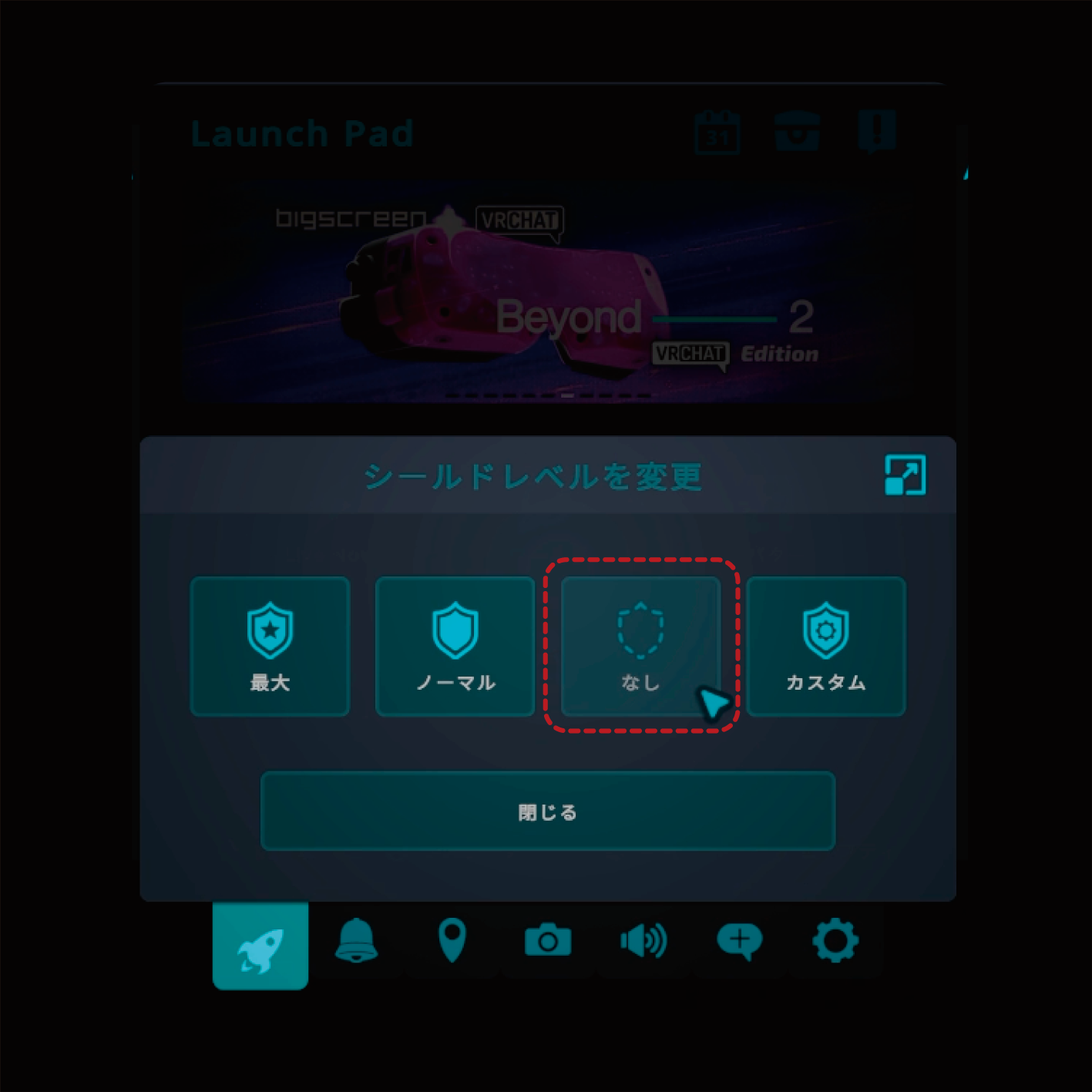 ・予めシールドレベルを”なし”に設定